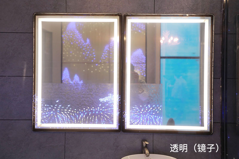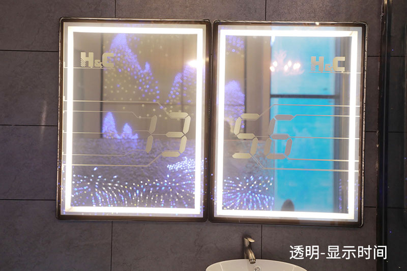 在鏡子上顯示時間、溫度,這是調光膜的一種特殊應用。一般情況下,鏡子上交替呈現當前的時間和室內溫度。當有人站在鏡子前面的時候,時間和溫度自動消失,它就變成了普通的鏡子。鏡子周圍的燈光可通過手勢來打開和關閉,非常方便。