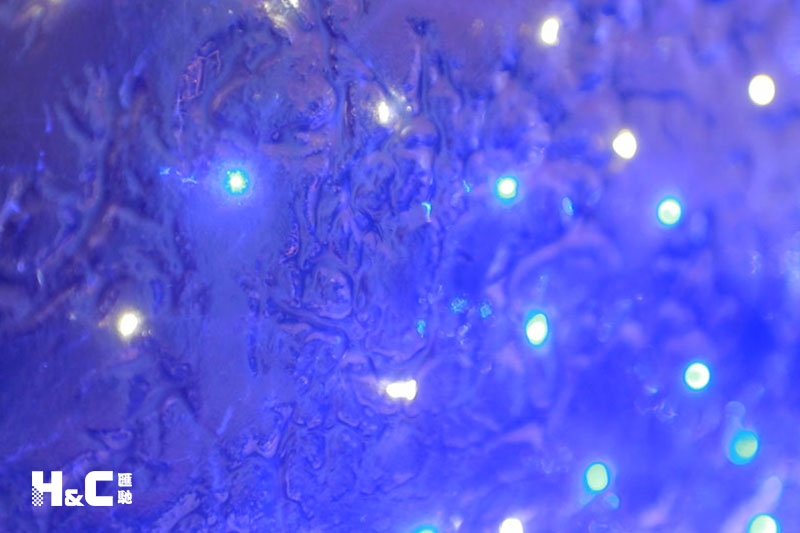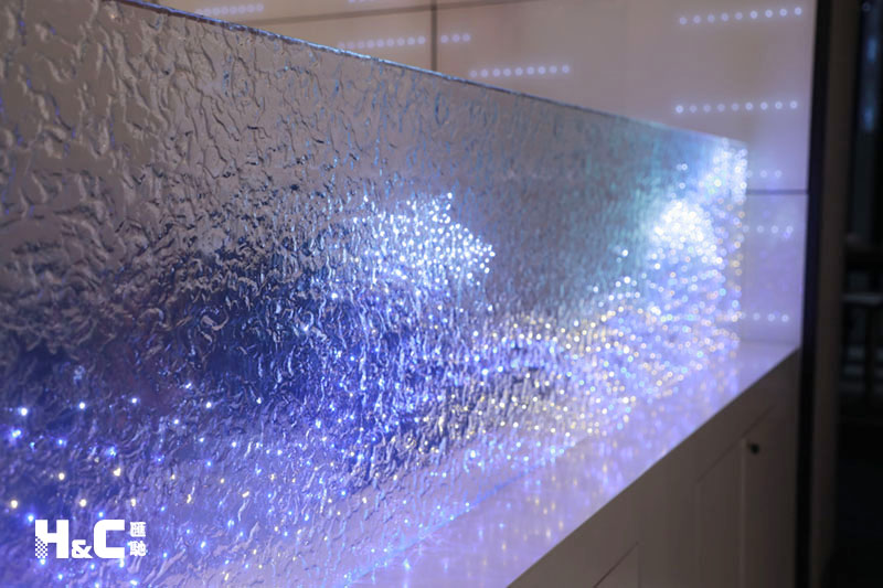 以往大家普遍認為LED發(fā)光玻璃只能由兩片平整的玻璃制成,而這一次,我們使用的是表面不平整的熱熔玻璃,將LED燈嵌入玻璃中。