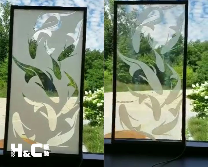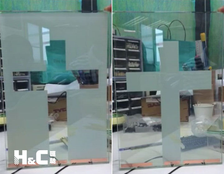 一按開關,玻璃透明;再按開關,玻璃霧化。這是調光玻璃的小樣品演示效果。很多朋友剛拿到它,感覺特別神奇有趣。可是好像也不怎么好玩呀?別急,更好玩的還在后面。