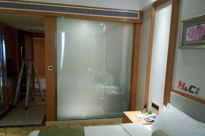 調光玻璃最基本的作用是擴展空間和保護隱私,在玻璃不透明的情況下,它還是一塊性能優良的投影硬屏。高清投影機背投到調光玻璃上的圖像十分清晰。