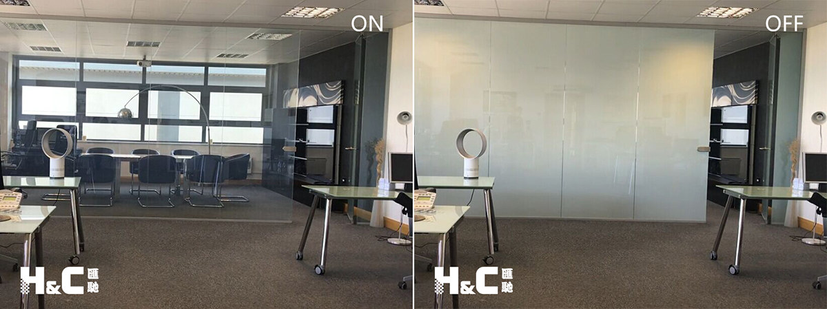 下圖為調光玻璃在辦公室的實際應用效果,可供各位參考,以使調光玻璃的效果呈現最佳狀態。